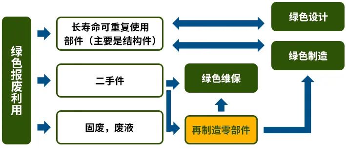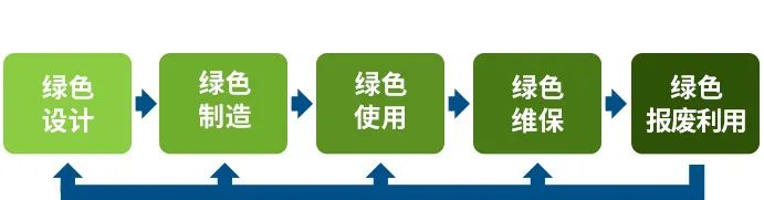 參加下圖,具體綠色報(bào)廢利用、綠色設(shè)計(jì)、綠色制造和綠色維保等環(huán)節(jié)是相輔相成的有機(jī)整體。
